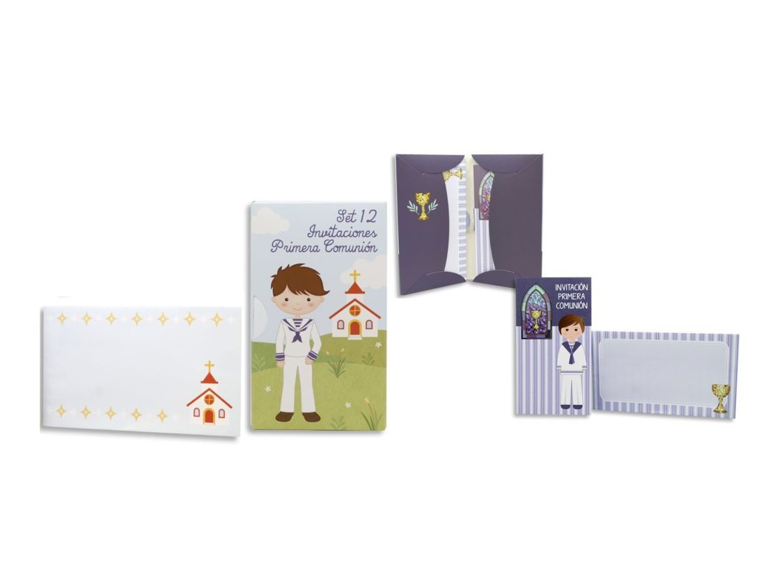 INVITACIONES NIÑO CON SOBRE SET 12 Unidades PRIMERA COMUNION SURTIDO A ELEGIR 1