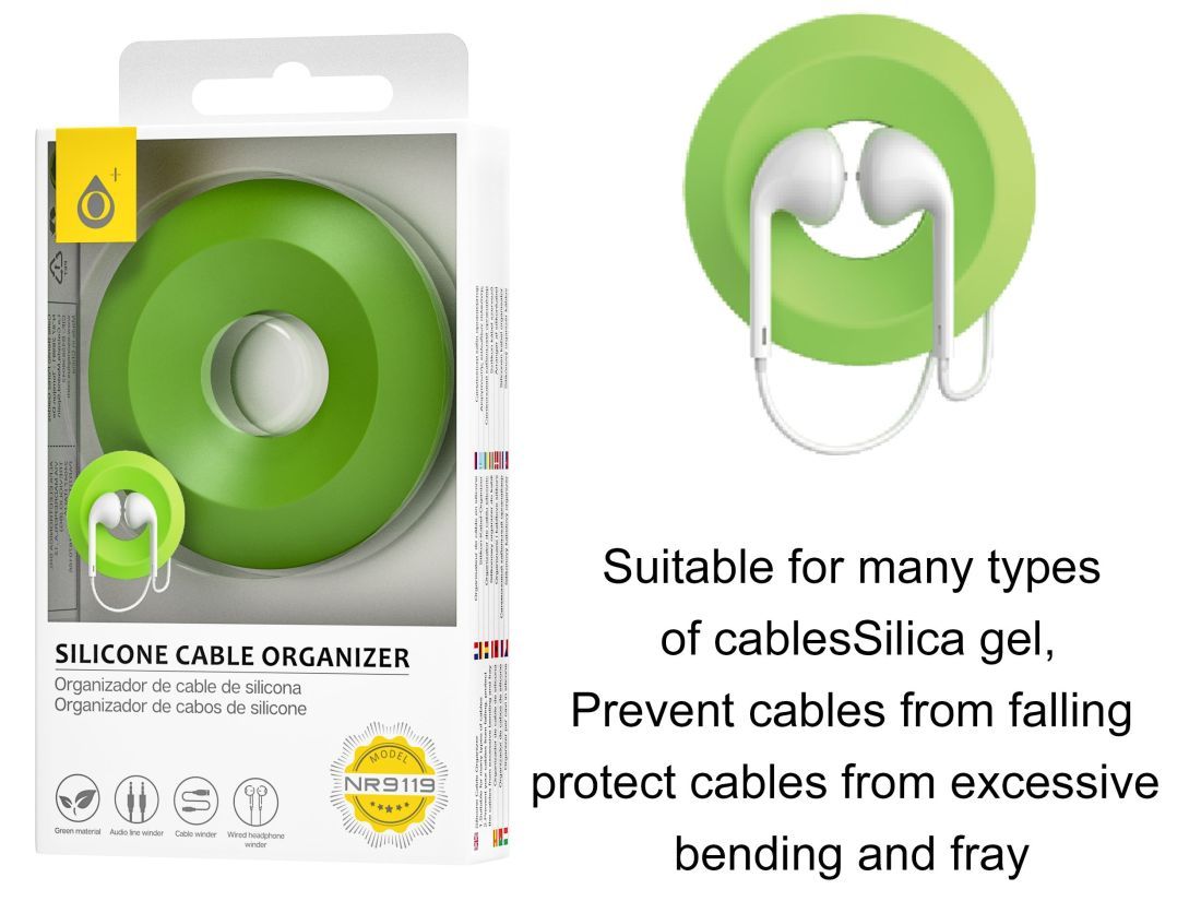 ORGANIZADOR CABLES Y AURICULARES SILICONA VERDE