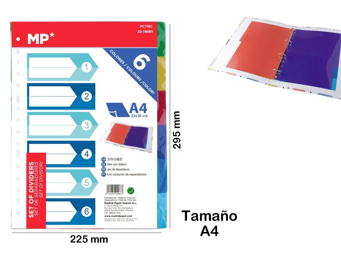 SEPARADORES DIN A4 6 DEPARTAMENTOS 29,5x22,5cm