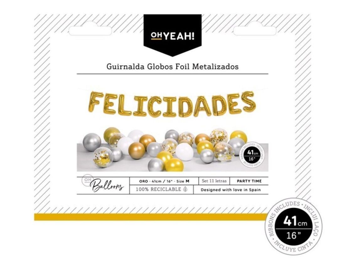 GLOBO GUIRNALDA FELICIDADES 41cm COLOR ORO