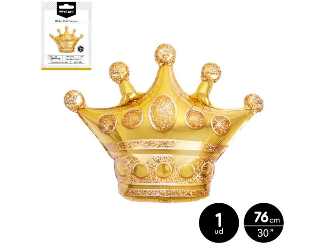 GLOBO POLIAMIDA CORONA COLOR ORO METALIZADO 76cm