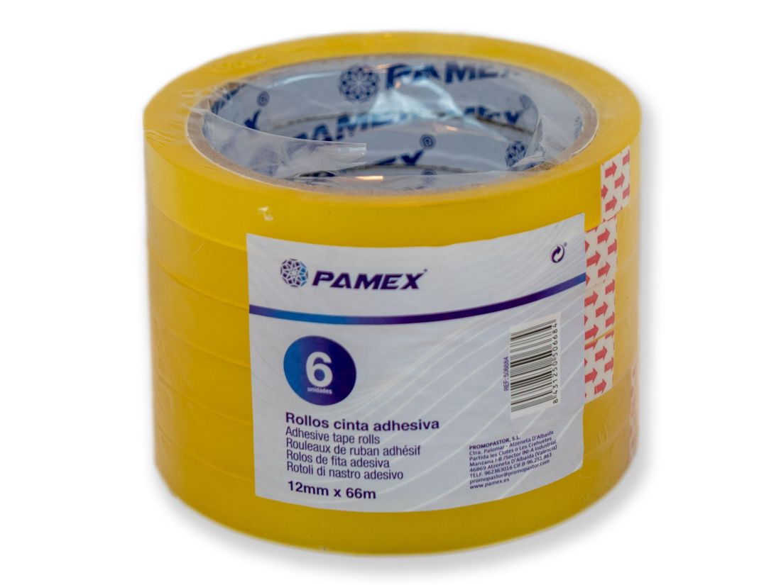 CINTA ADHESIVA 12mm 66m 6 Unidades DIAMETRO 10cm