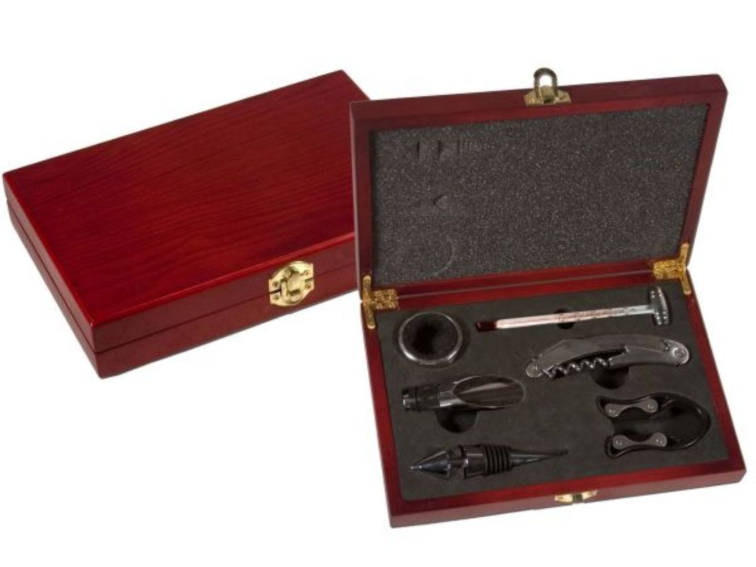JUEGO 6 PIEZAS PARA VINO CAJA MADERA 23x15cm
